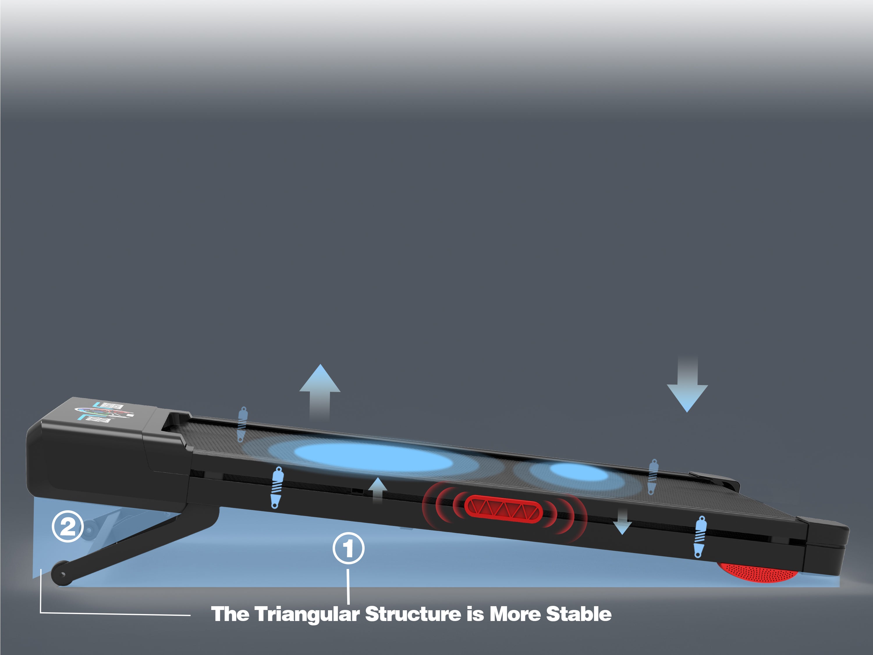 Protect your joints with the innovative triple-cushioned structure, featuring a double-deck frame, upgraded silicone shock absorbers, and a 5-layer anti-slip running belt. This design delivers maximum comfort and reduces joint impact, making it ideal for extended use.