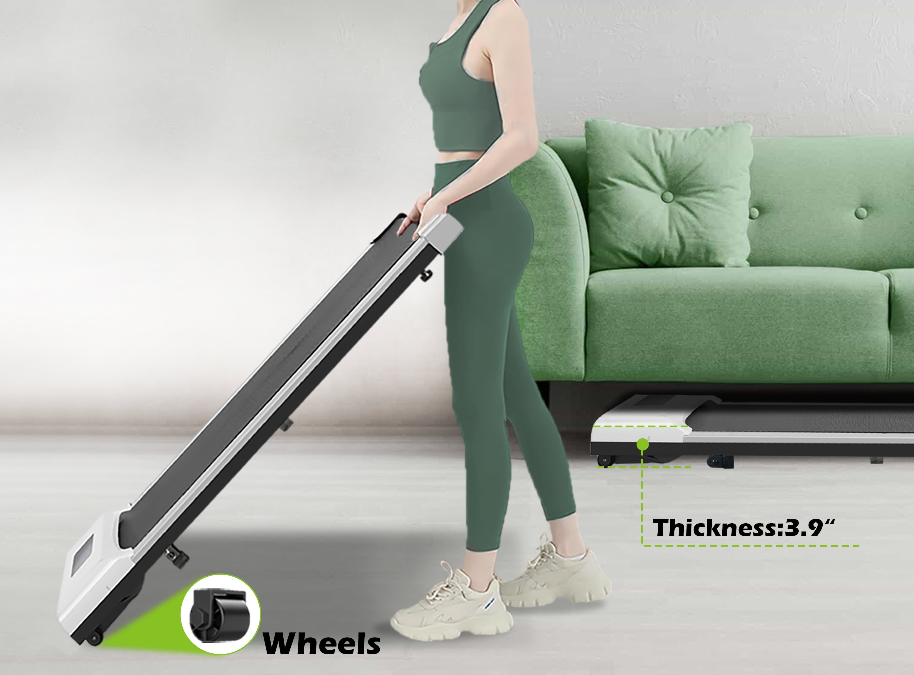 Our compact treadmill is only 3.9 inches thin, 46.5 pounds lightweight. It is easy to move and store under your desks, sofas, couches, beds, and small spaces. We are making it ideal for office, apartment, home small and busy lifestyles.