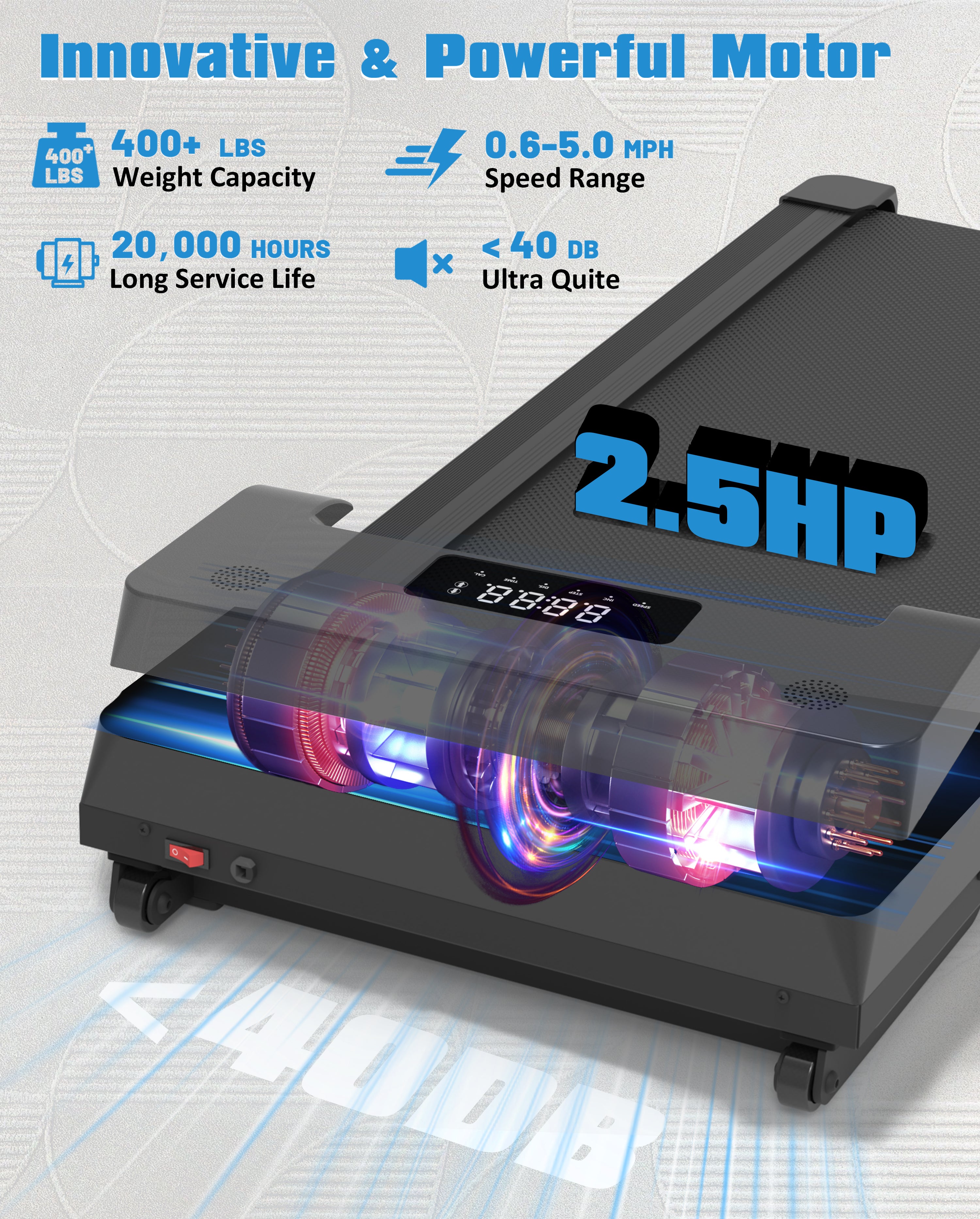 Bluetooth Speaker and 2.5HP Innovative Silent Motor : Connect your phone to our treadmill via Bluetooth named Treadmill, and enjoy all your favorite music wirelessly while workout. Enjoy silent workouts with our innovative 2.5HP quiet motor under desk treadmill with incline automatic for home and office. The running noise of the incline walking pad treadmill is less than 40 dB. Also, it ensures a long-lasting, reliable workout over 20,000 hours without overheating and maximum speed of 5.0 MPH.